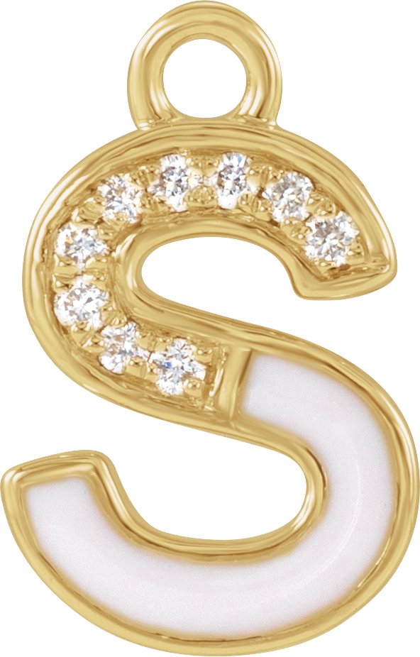 14K Yellow Petite Pavé™ .03 CTW Natural Diamond Blush Enamel Initial S Dangle
