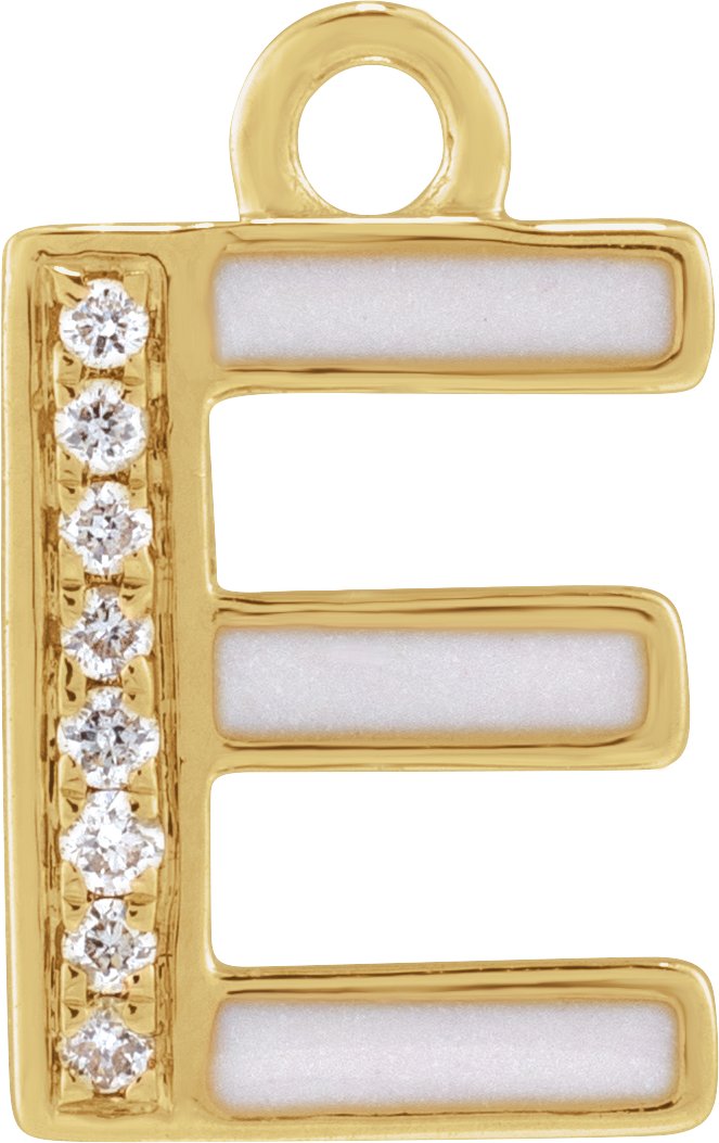 14K Yellow Petite Pavé™ .025 CTW Natural Diamond Blush Enamel Initial E Dangle