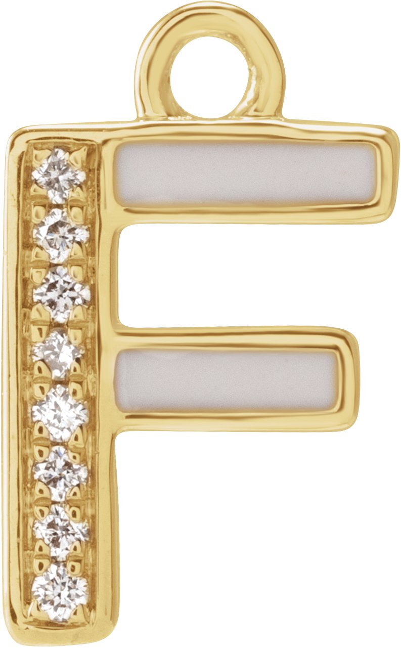 14K Yellow Petite Pavé™ .025 CTW Natural Diamond Blush Enamel Initial F Dangle