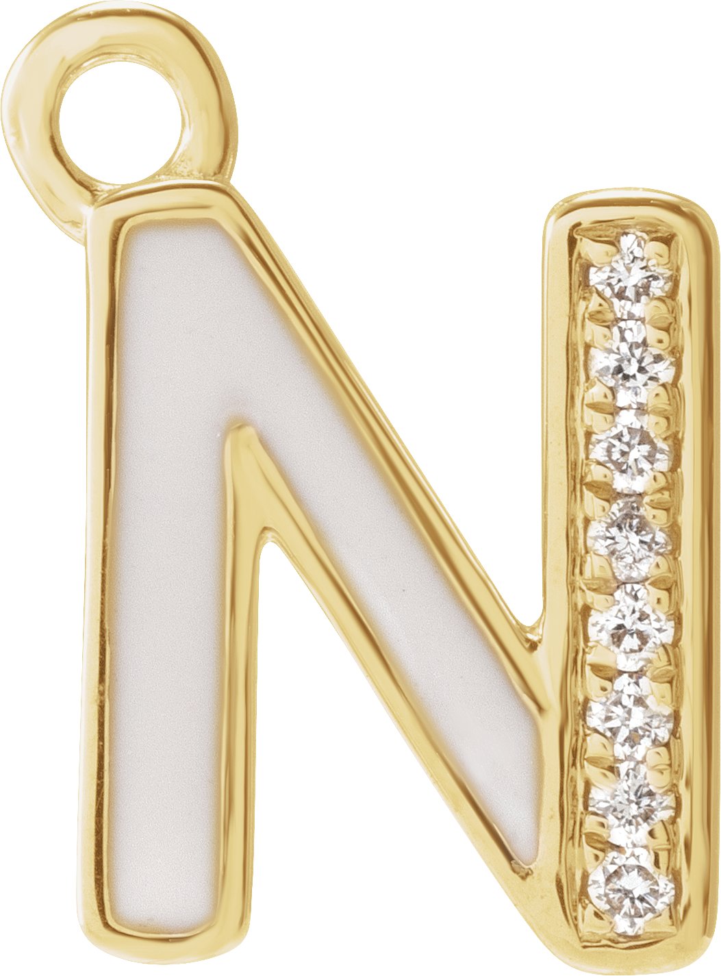 14K Yellow Petite Pavé™ .025 CTW Natural Diamond Blush Enamel Initial N Dangle