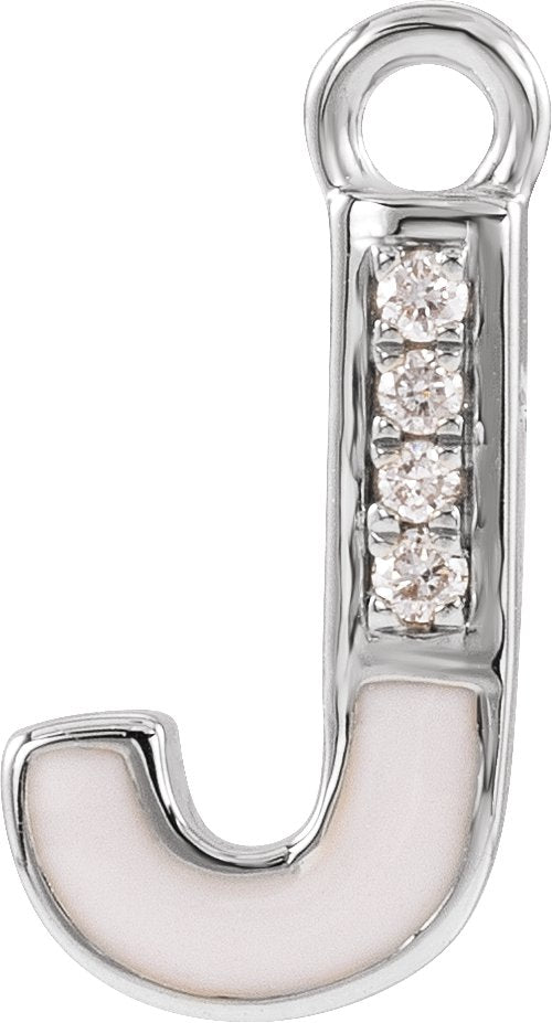 14K White Petite Pavé™ .015 CTW Natural Diamond Blush Enamel Initial J Dangle