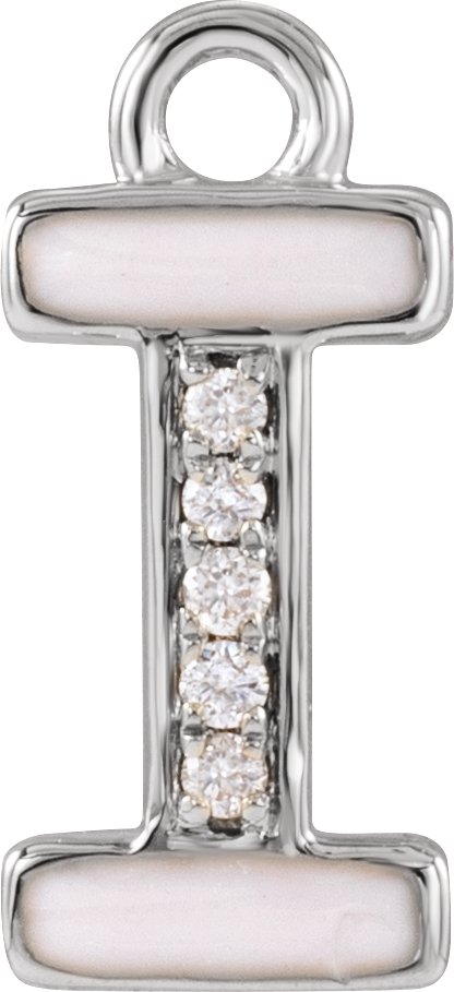 14K White Petite Pavé™ .015 CTW Natural Diamond Blush Enamel Initial I Dangle