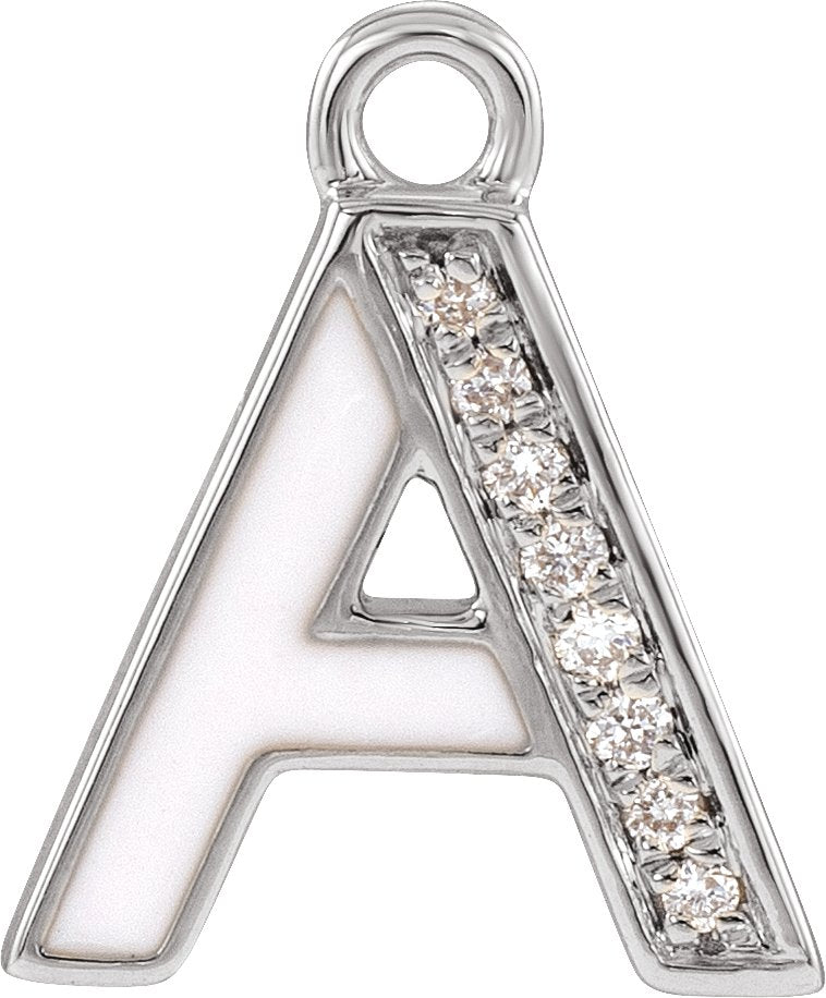 14K White Petite Pavé™ .025 CTW Natural Diamond Blush Enamel Initial A Dangle