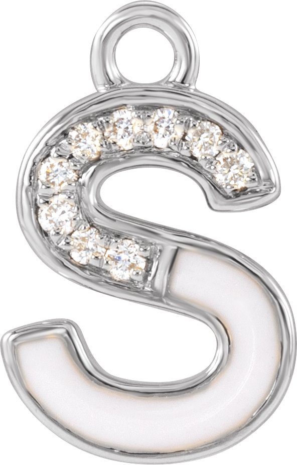 14K White Petite Pavé™ .03 CTW Natural Diamond Blush Enamel Initial S Dangle