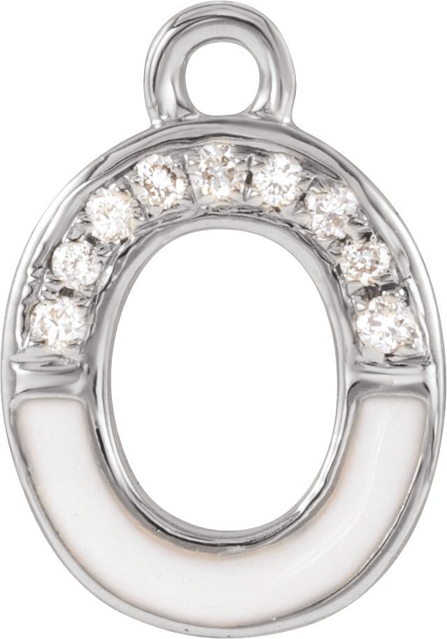 14K White Petite Pavé™ .03 CTW Natural Diamond Blush Enamel Initial O Dangle