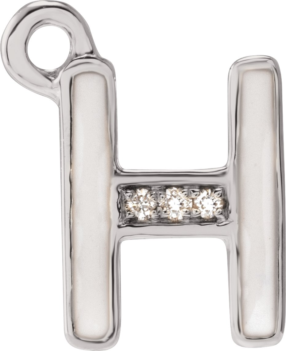 14K White Petite Pavé™ .01 CTW Natural Diamond Blush Enamel Initial H Dangle