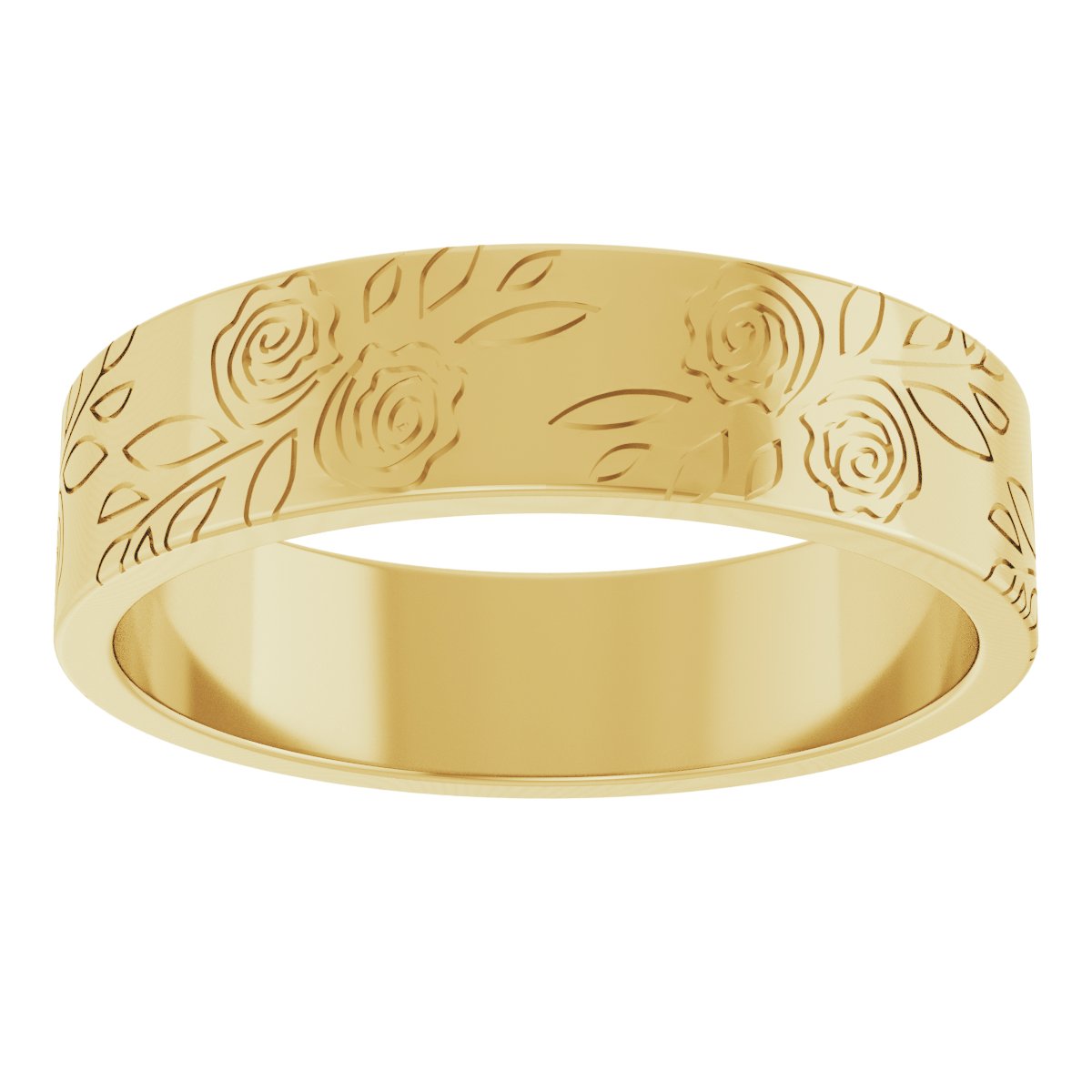 14K Yellow 5 mm Floral Flat Band Size 4.5