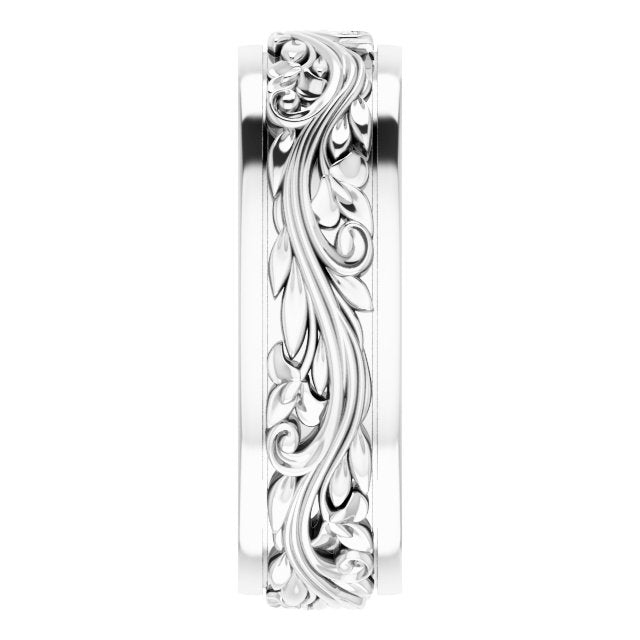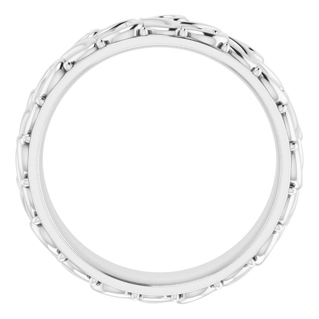 10K White 7 mm Floral Inlay Flat Band Size 10.5