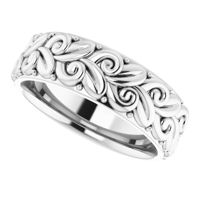 10K White 3 mm Milgrain Floral Flat Band Size 7