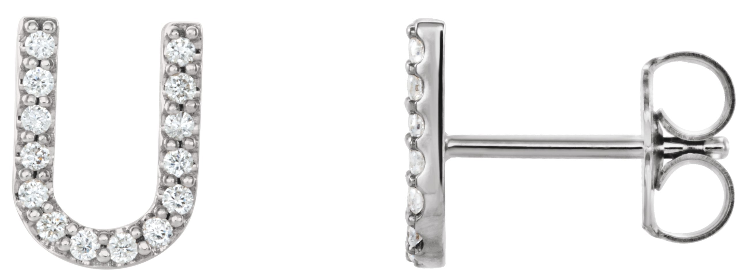 14K White .05 CTW Natural Diamond Initial U Earring