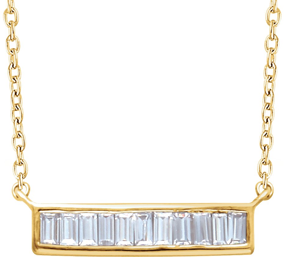 14K White 1/2 CTW Natural Diamond Baguette Bar 18" Necklace