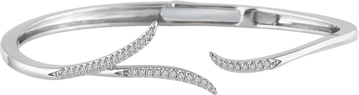 14K White 1/4 CTW Natural Diamond Hinged Cuff 7" Bracelet