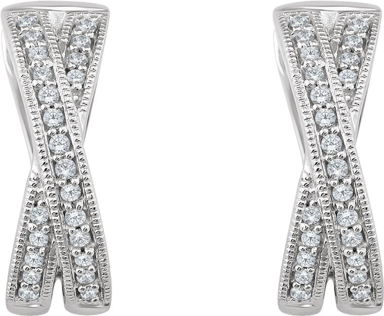 14K White 1/5 CTW Natural Diamond Criss-Cross 15.5 mm Hoop Earrings