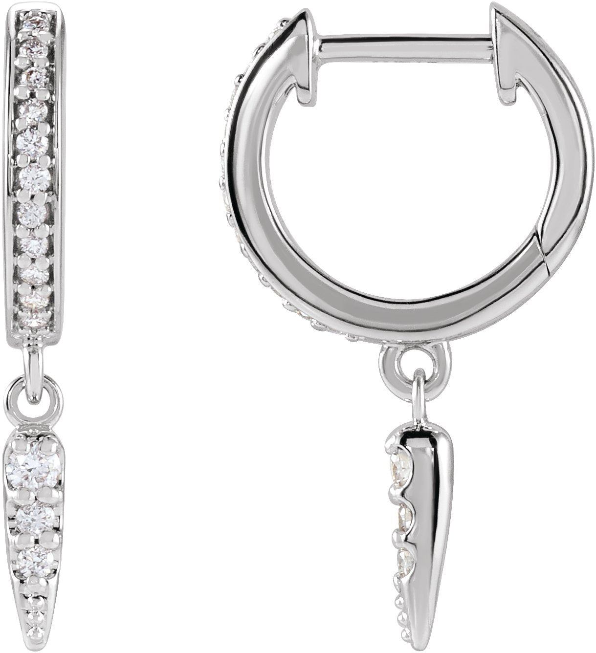 14K White 1/5 CTW Natural Diamond Hinged Hoop Spike Earrings