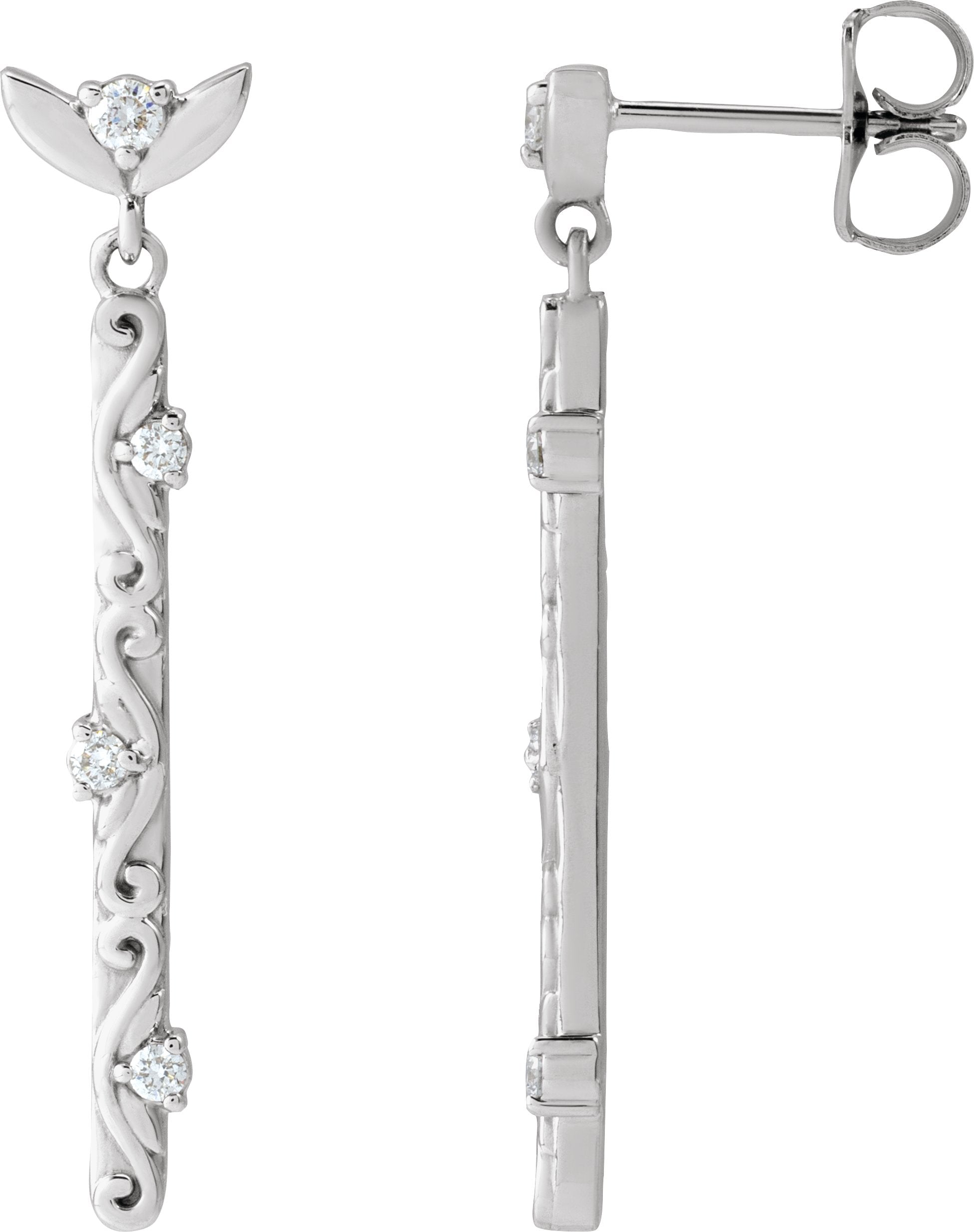 - Description: 1/8 CTW Natural Diamond Vintage-Inspired Dangle Earrings