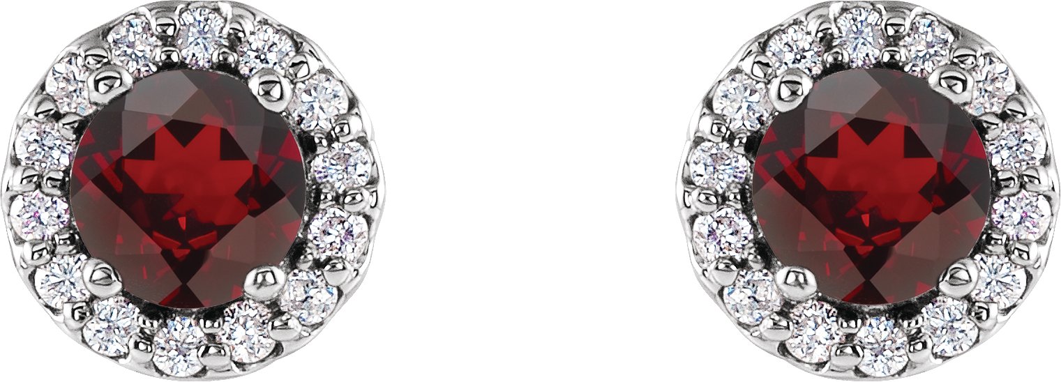 14K White 4 mm Natural Mozambique Garnet & 1/10 CTW Natural Diamond Earrings