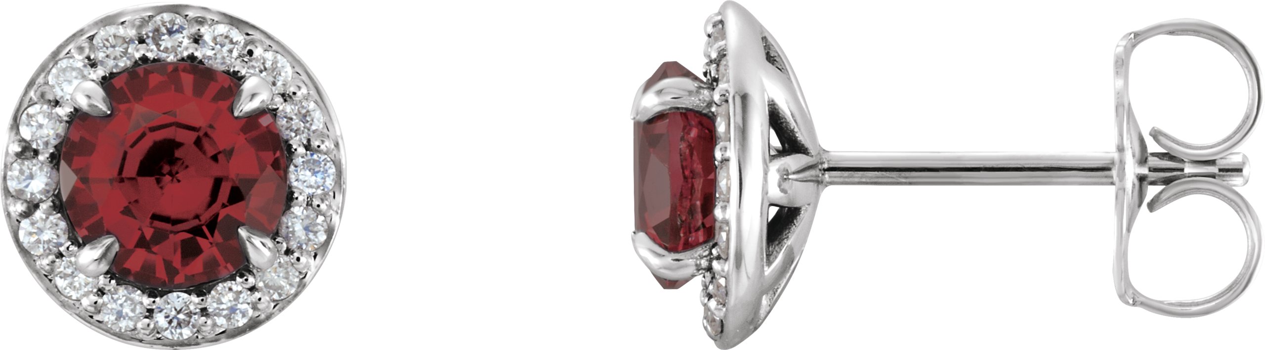 14K White 5 mm Natural Mozambique Garnet & 1/8 CTW Natural Diamond Earrings