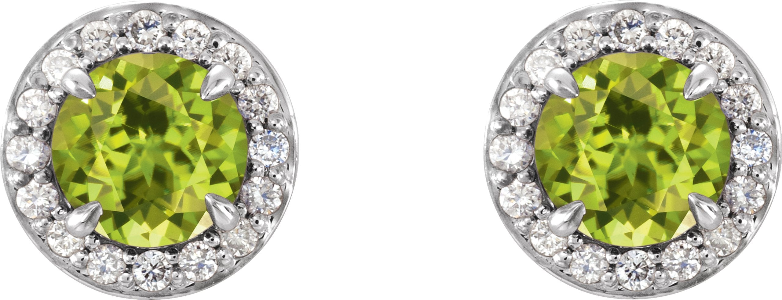 14K White 5 mm Natural Peridot & 1/8 CTW Natural Diamond Earrings