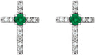 14K White Lab-Grown Emerald & .05 CTW Natural Diamond Cross Earrings
