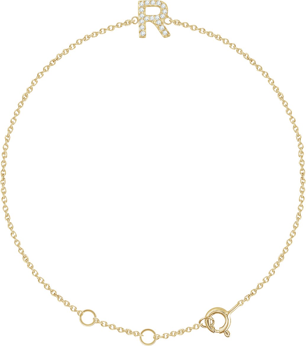 14K Yellow .06 CTW Natural Diamond Initial R 6-7" Bracelet