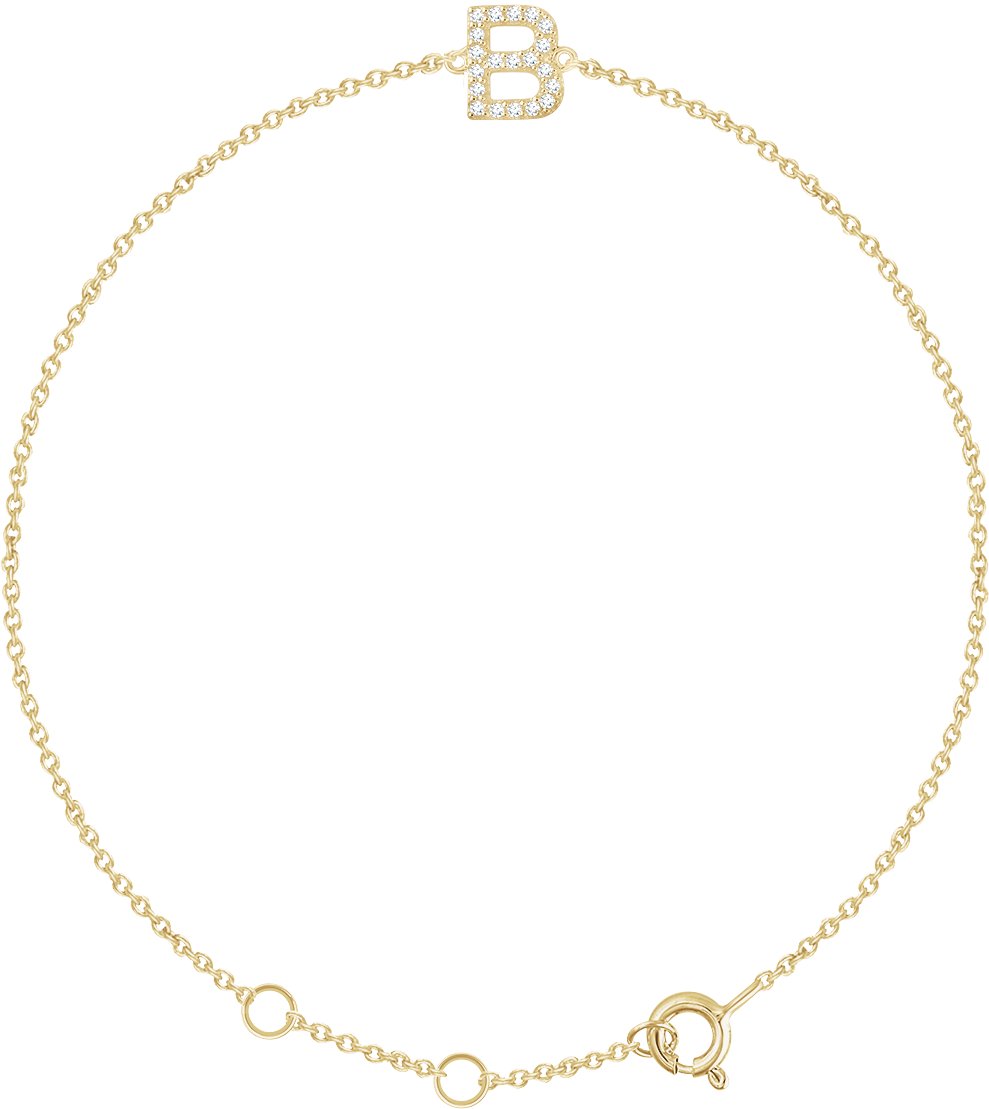 14K Yellow .07 CTW Natural Diamond Initial B 6-7" Bracelet