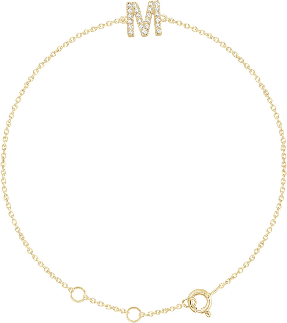 14K Yellow .07 CTW Natural Diamond Initial M 6-7" Bracelet