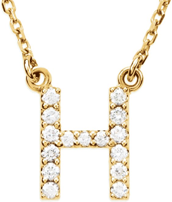 14K Yellow 1/8 CTW Natural Diamond Initial H 16" Necklace