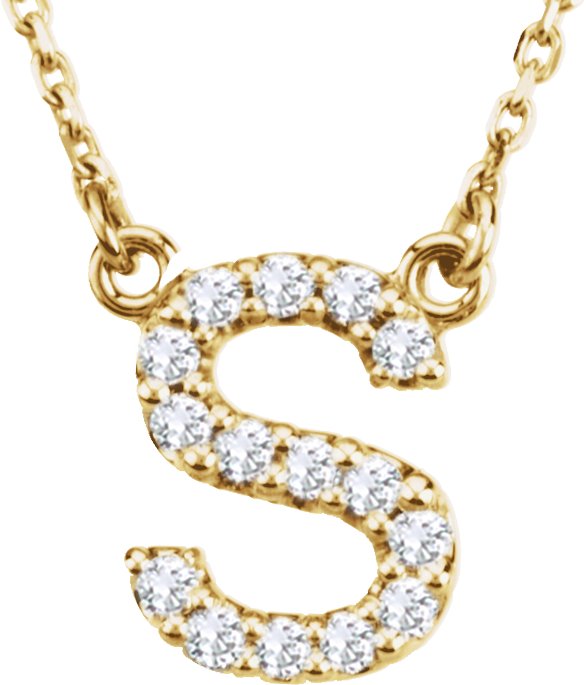 14K Yellow 1/8 CTW Natural Diamond Initial S 16" Necklace