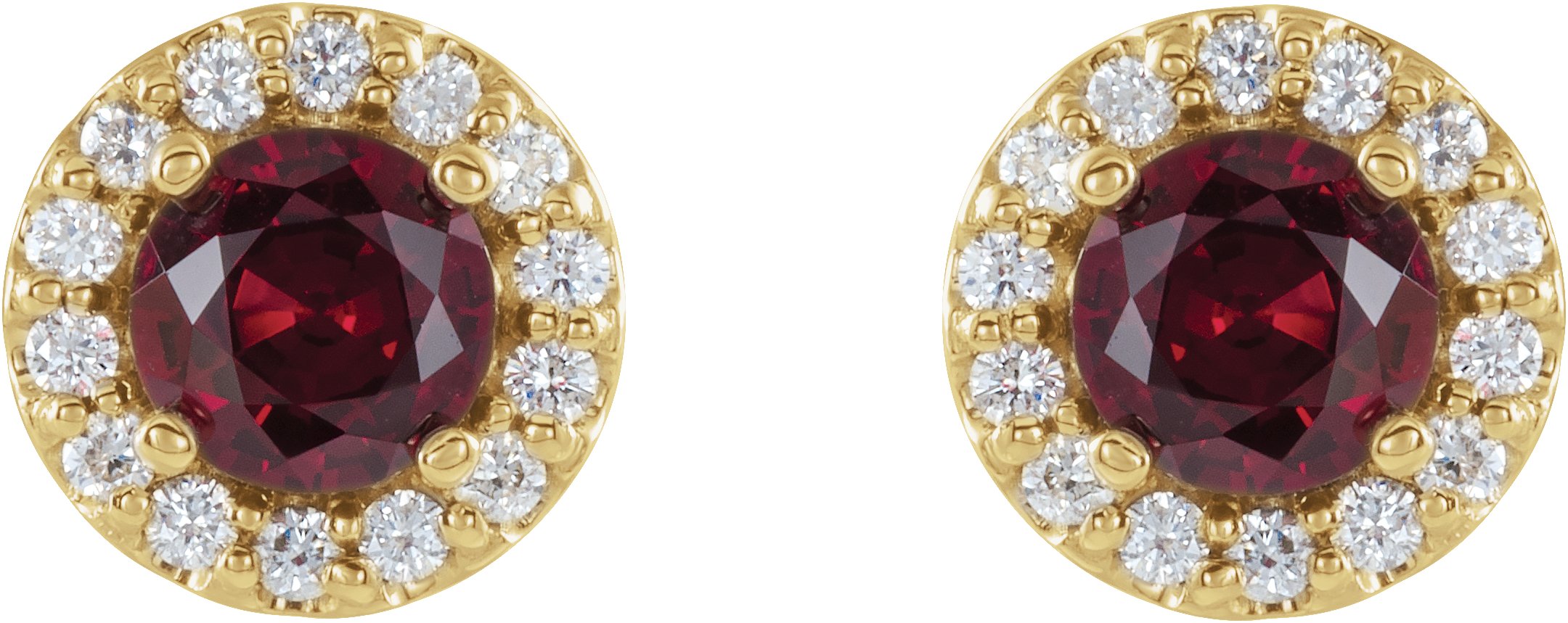14K Yellow 4 mm Natural Ruby & 1/8 CTW Natural Diamond Earrings