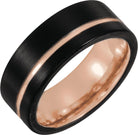Black & 18K Rose Gold PVD Tungsten 8 mm Grooved Comfort-Fit Band Size 11