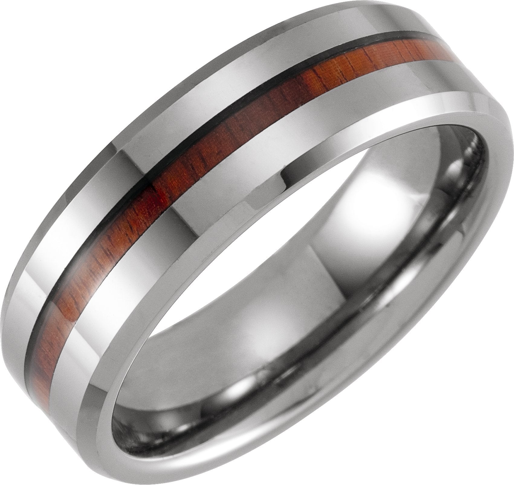 Tungsten 8 mm Beveled-Edge Acacia Wood Inlay Comfort-Fit Band Size 13