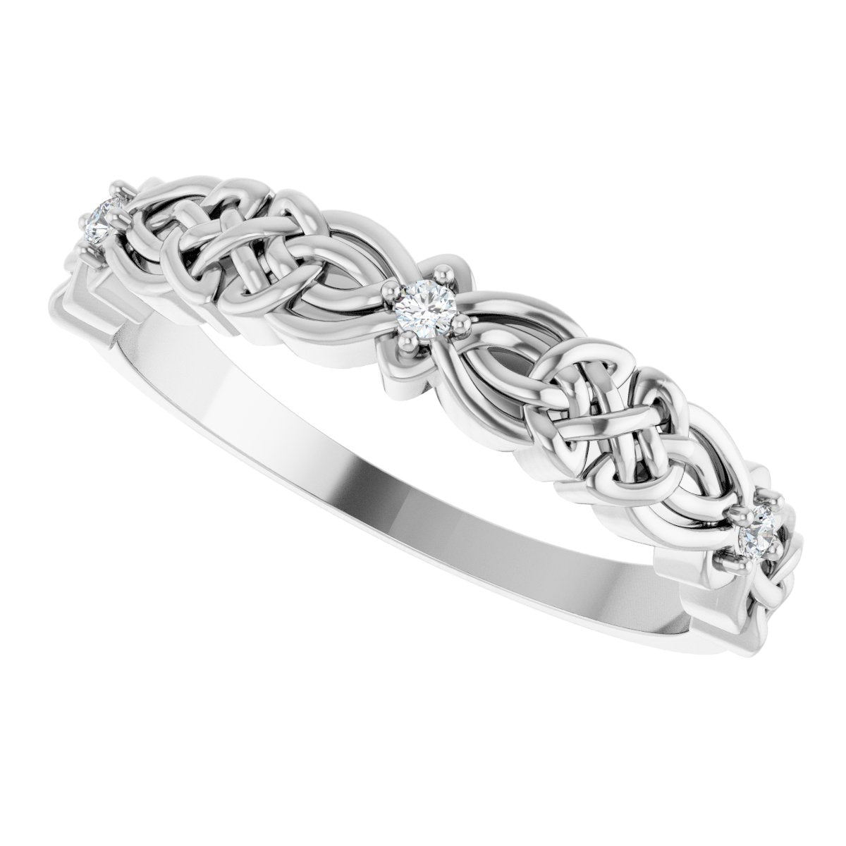 14K White .04 CTW Diamond Celtic-Inspired Band