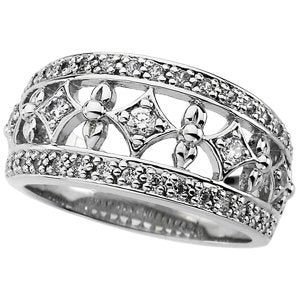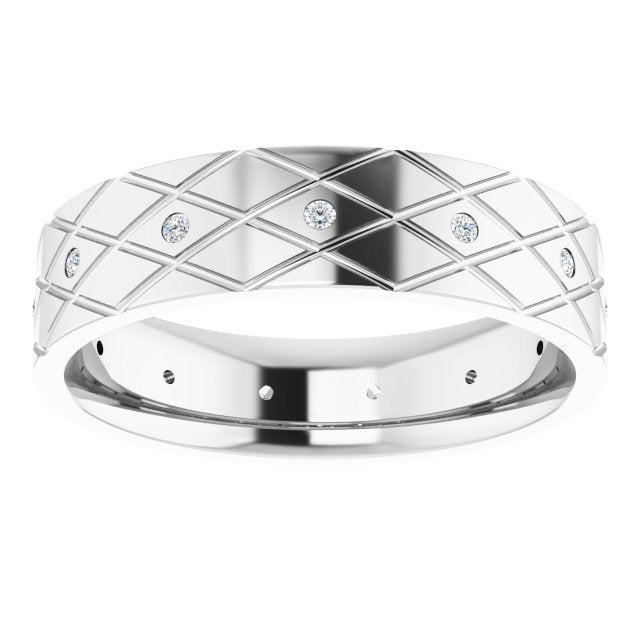 14K White 1/8 CTW Natural Diamond Accented Patterned Band