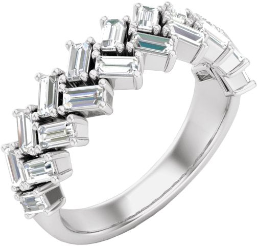 14K White .08 CTW Natural Diamond Contour Band