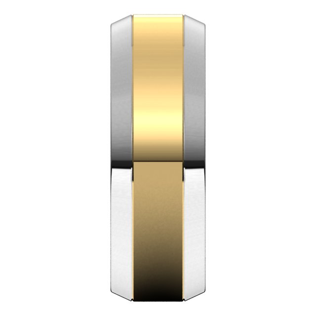 14K White/Yellow 7 mm Stepped Beveled-Edge Inlay Comfort-Fit Flat Band Size 13.5