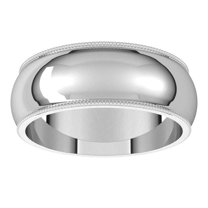 Sterling Silver 7 mm Milgrain Half Round Band Size 14
