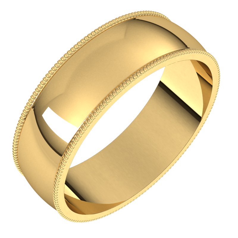 14K Yellow 6 mm Lightweight Milgrain Half Round Band Size 9