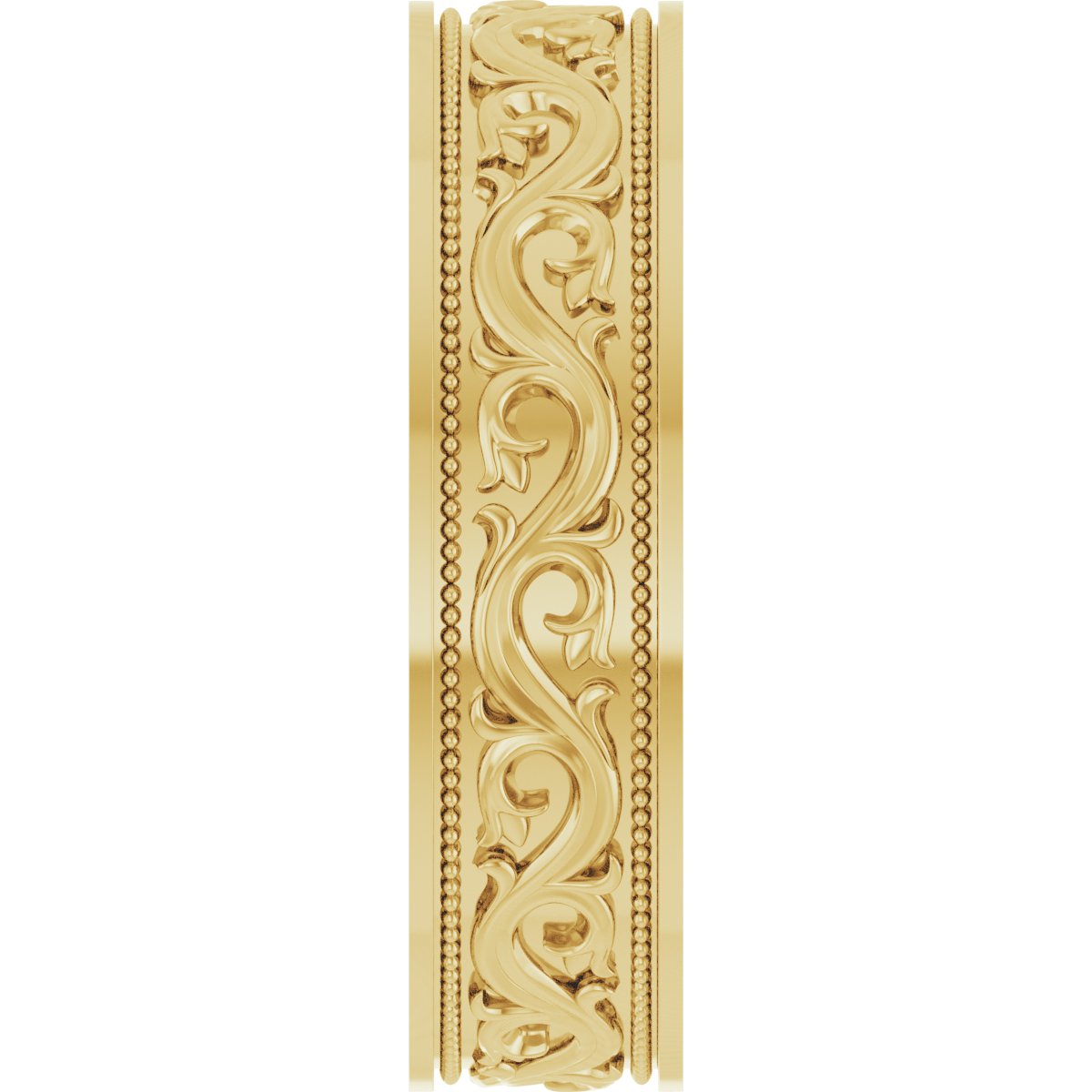 14K Yellow 6 mm Milgrain Sculptural Flat Band Size 10