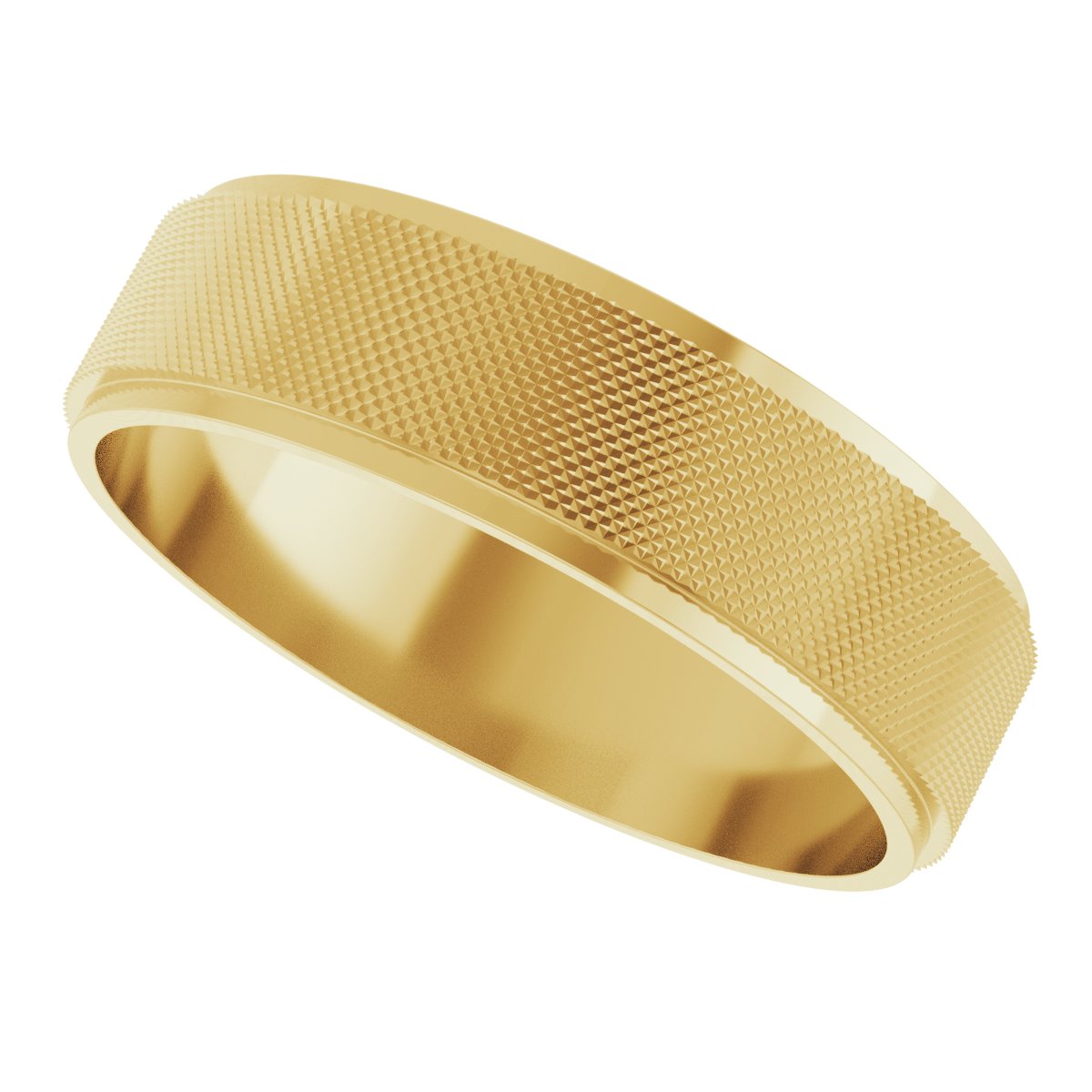 10K Yellow 6 mm Stepped-Edge Knurled Flat Band Size 8