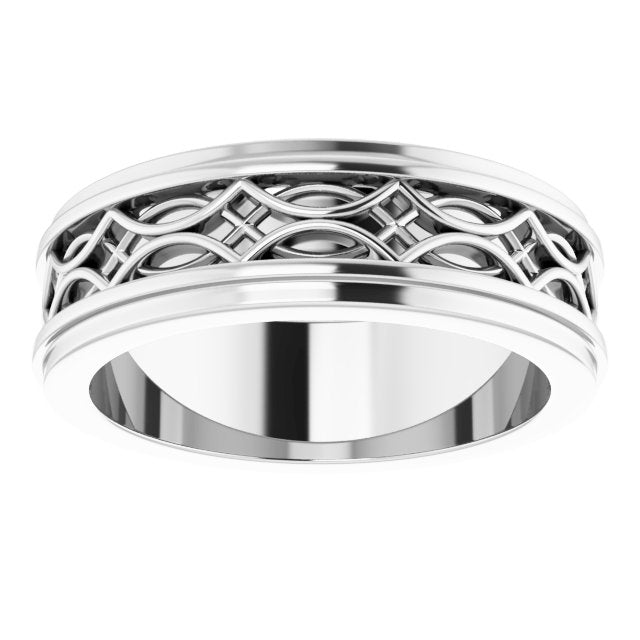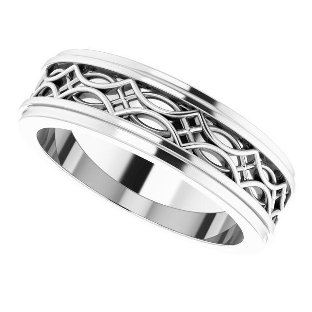 14K White 6.4 mm Stepped-Edge Sculptural Flat Band Size 8.5