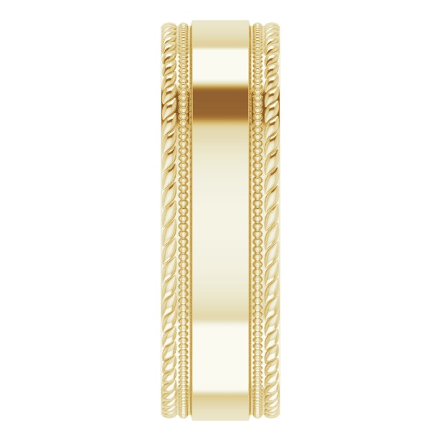14K Yellow 7 mm Milgrain & Rope Stepped-Edge Comfort-Fit Flat Band Size 10.5