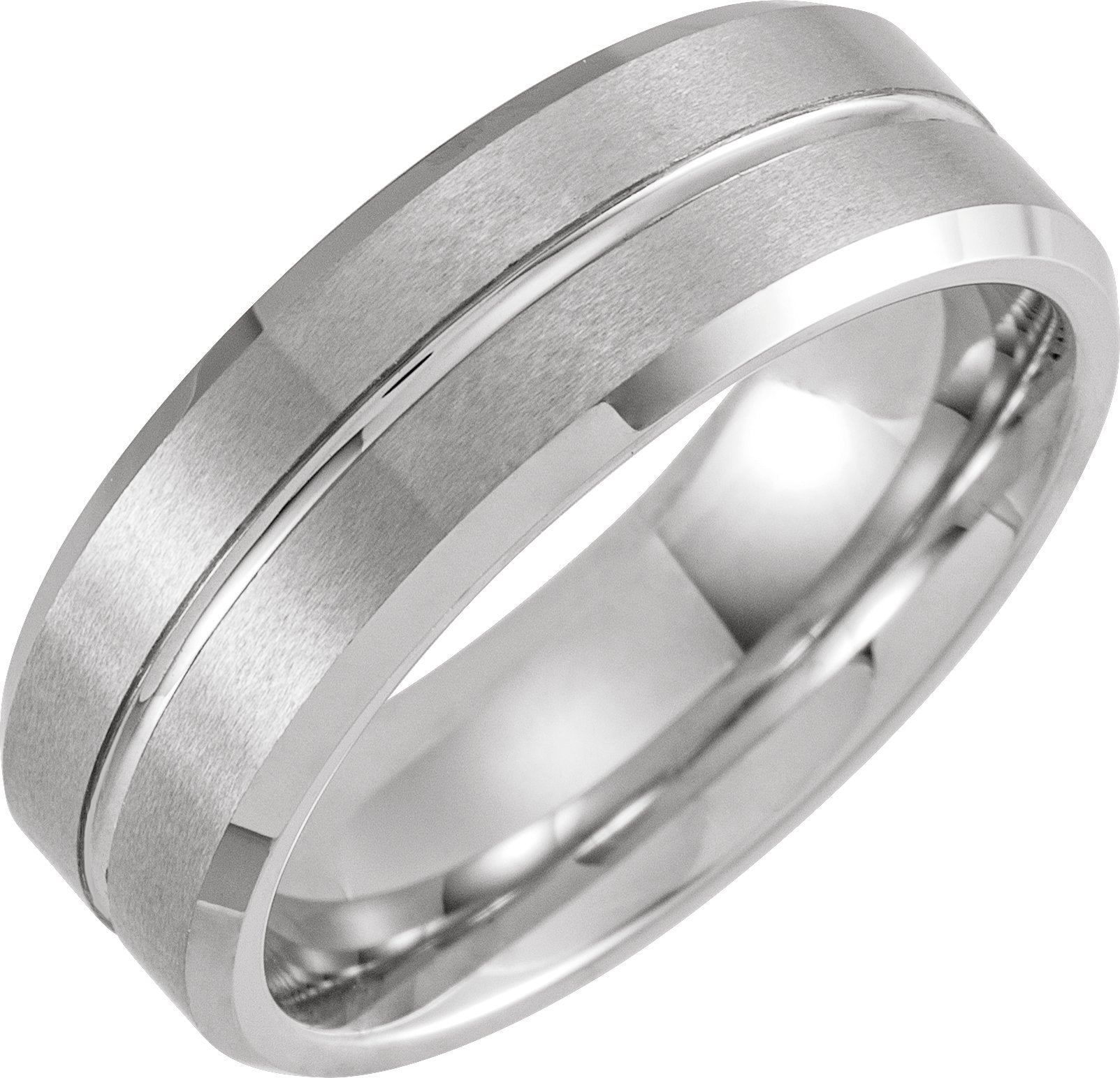 White PVD Tungsten 8 mm Beveled-Edge Grooved Comfort-Fit Band Size 7.5
