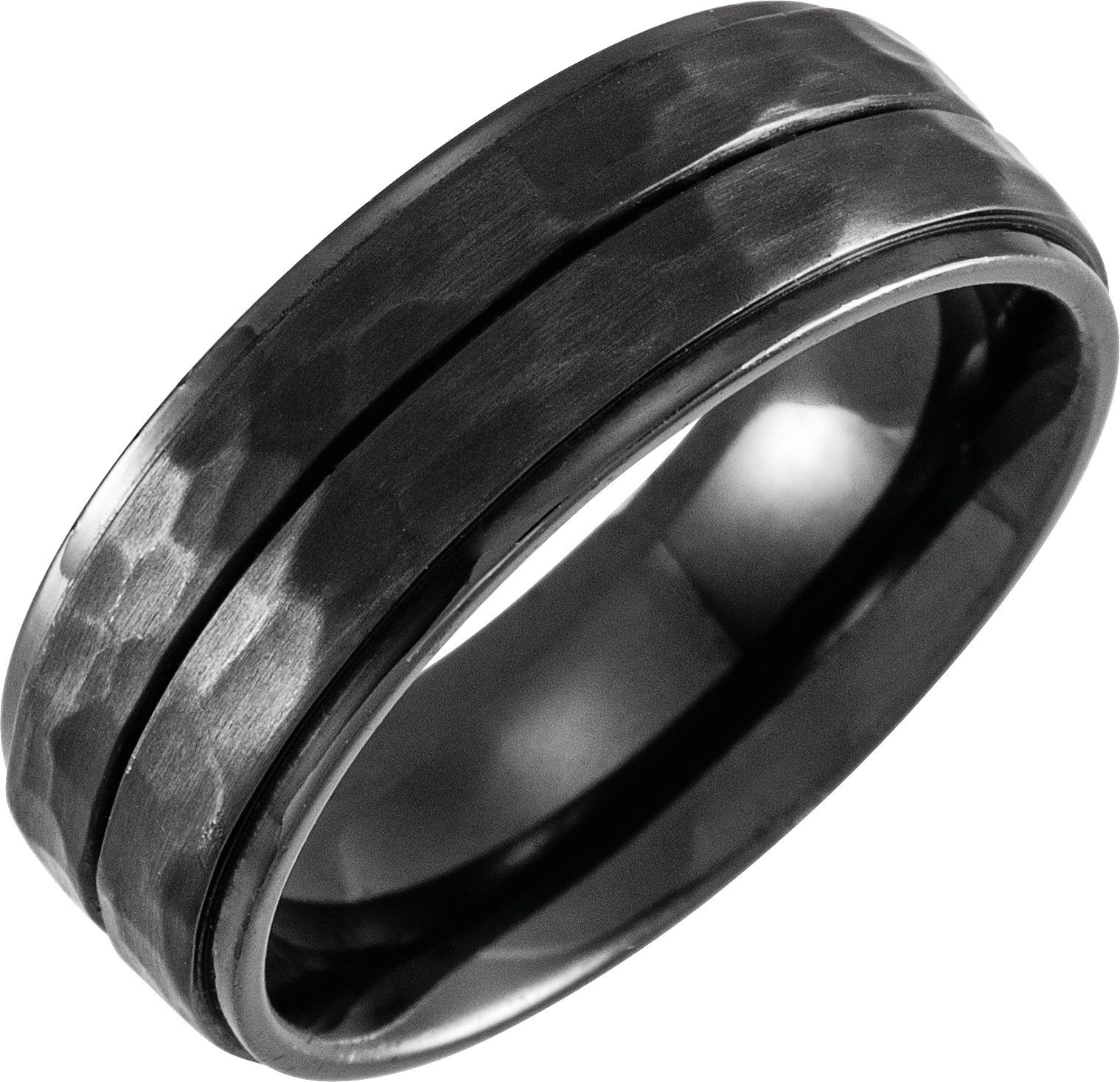 Black Titanium 8 mm Grooved Stepped-Edge Comfort-Fit Flat Band Size 9