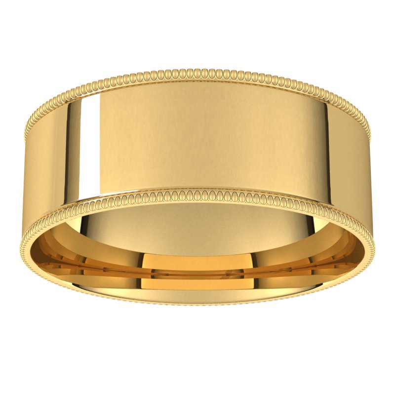 10K Yellow 8 mm Milgrain Comfort-Fit Flat Band Size 10.5
