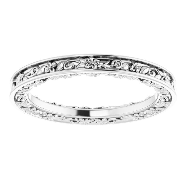 14K White 2.5 mm Floral Flat Band Size 7.5