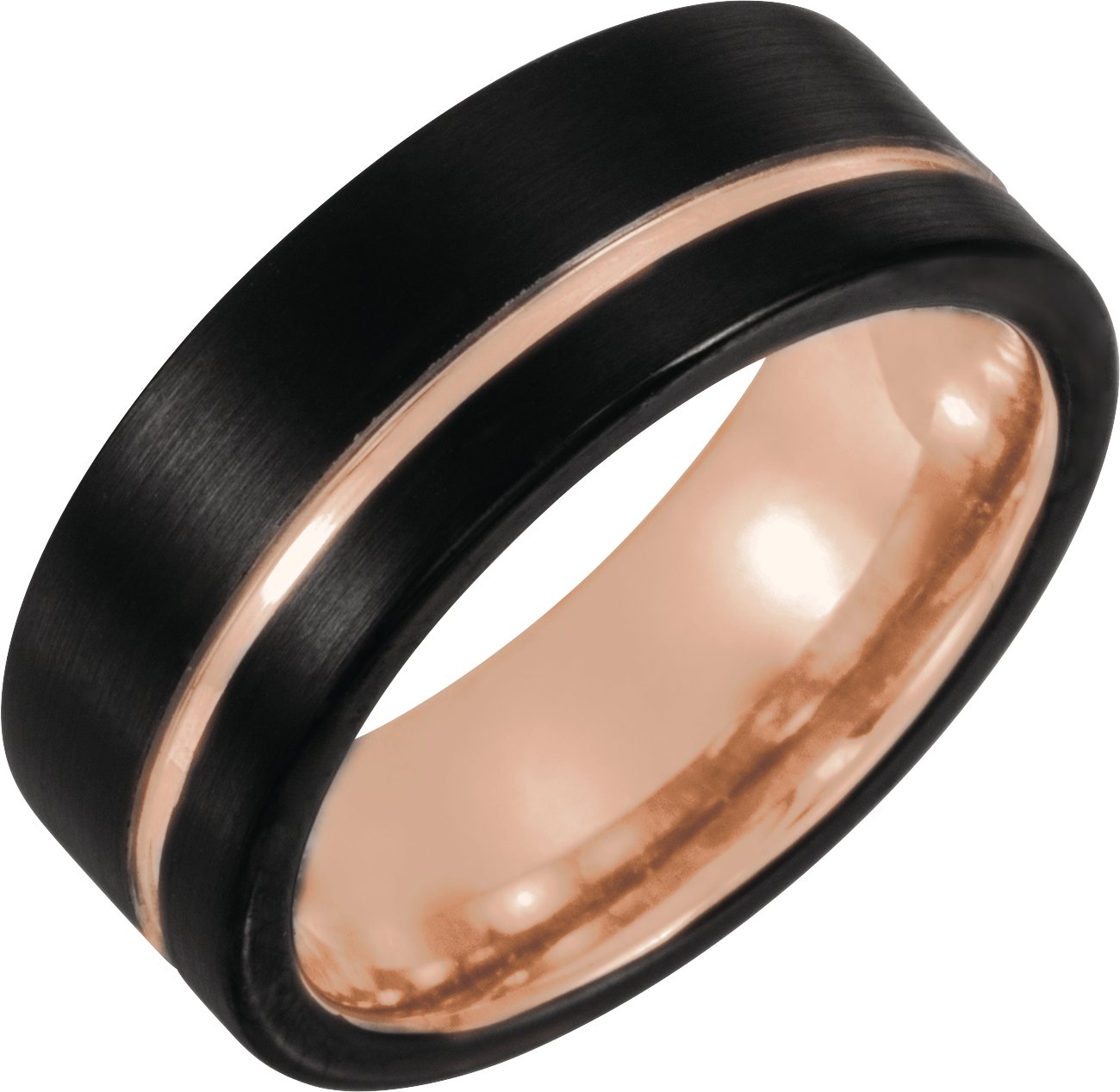 18K Rose Gold PVD & Black PVD Tungsten 8 mm Stepped-Edge Comfort-Fit Flat Band Size 8