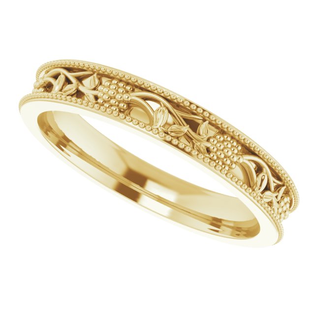 14K Yellow 3 mm Milgrain Edge Floral Flat Band Size 8