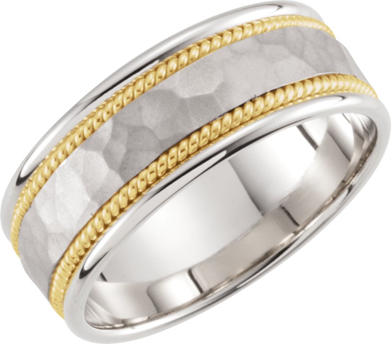 14K White/Yellow 8 mm Rope Edge Comfort-Fit Flat Band Size 9