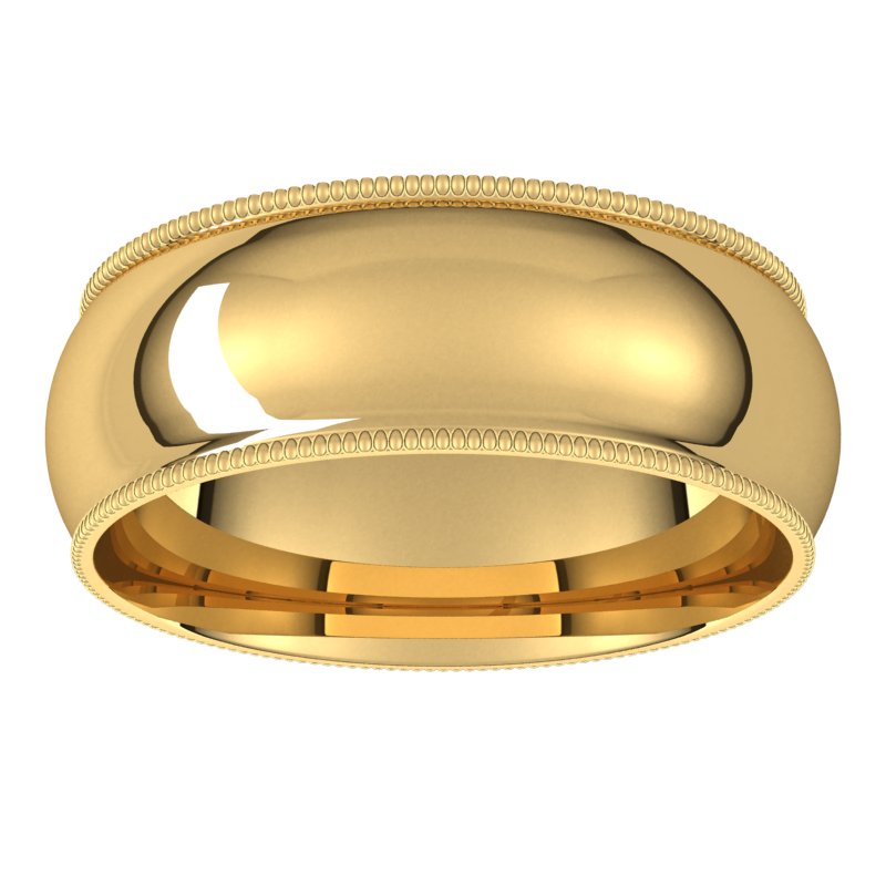 14K Yellow 7 mm Milgrain Comfort-Fit Half Round Band Size 10.5