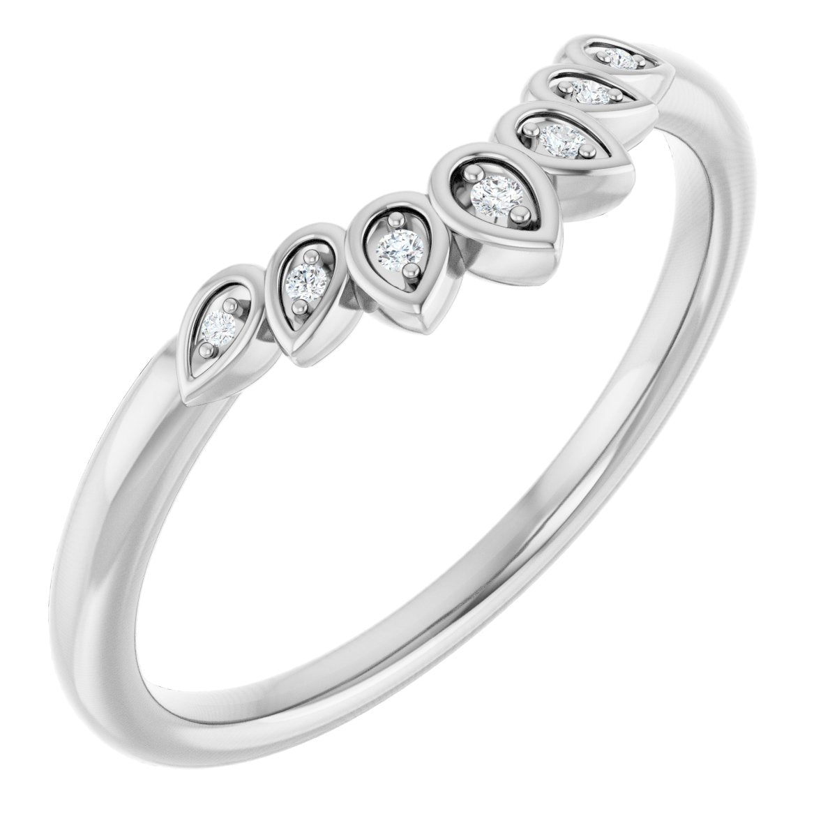 14K White .025 CTW Natural Diamond Floral Contour Band